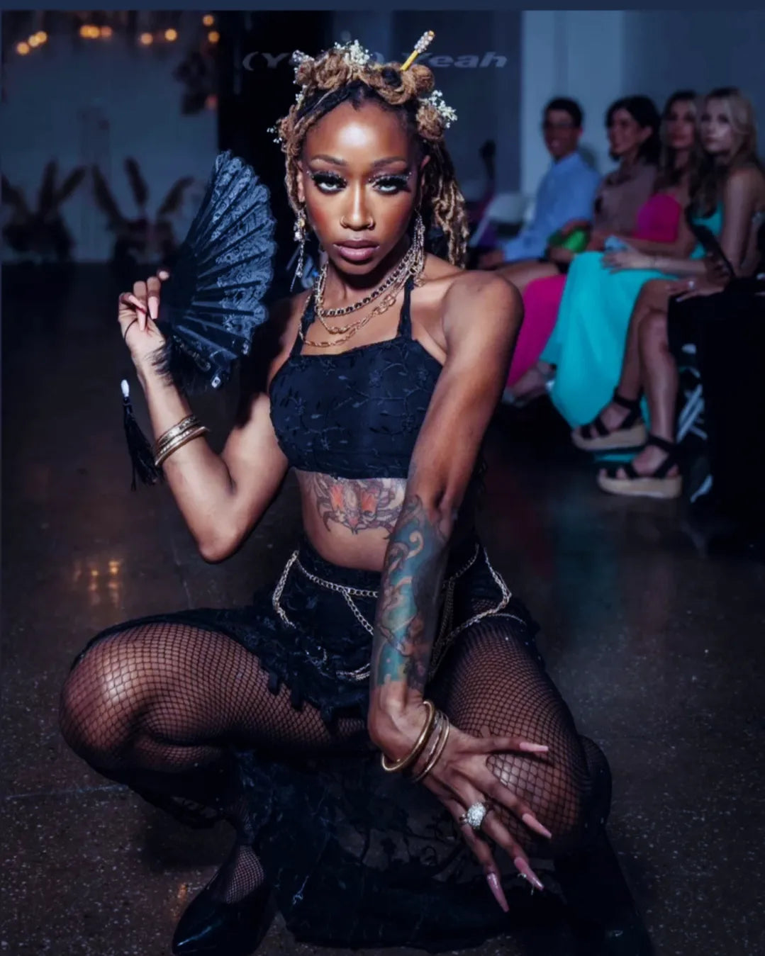 "Pretty Soliderette" Reverse Bustier & Mini skirt, "Warianna" pump, and "Lover Gyal" corset are the perfect denim mix and match pieces.